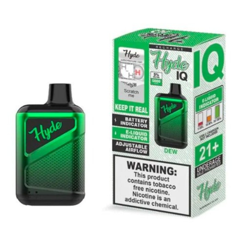 The Hyde IQ Recharge Dew Disposable Vape comes with around 5000 puffs of a lemon-lime fizzy drink flavor at 5% nicotine salt strength. Stock up today!