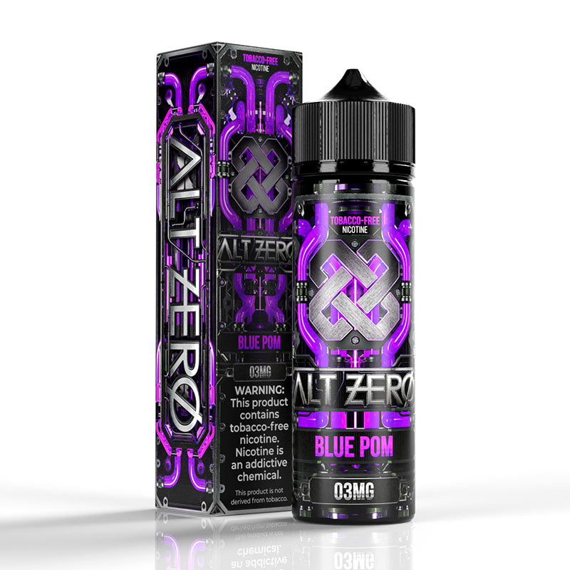 Blue Pom TFN by Alt Zero is a max-VG juice that takes the balanced flavor of blueberry and merges it with sweet pomegranate. The tropical notes help to elevate the crisp berry flavors. The result is an e-liquid that can be vaped all-day.