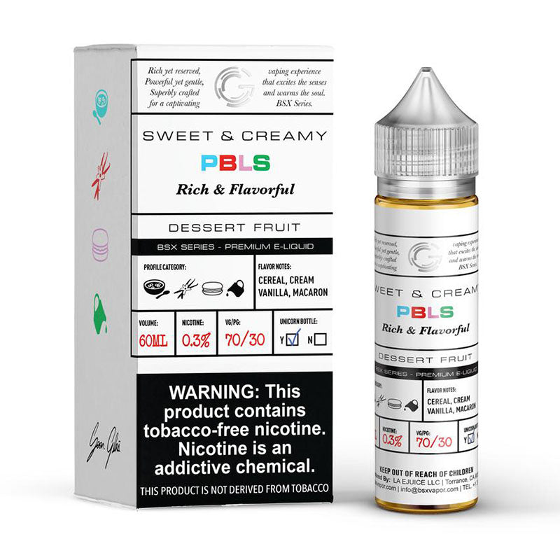 PBLS Glas BSX Synthetic E-Liquid is both an e-liquid and a trip down memory lane. Many adult vapers look back fondly on the 1980s, an era when sugar-laden cereals were considered the best way to start your day. While that is nutritionally questionable, the flavor profile created by master mixologist Sean Glas is beyond reproach. PBLS Glas BSX Synthetic E-Liquid is amazing. The creamy milk notes smooth out very authentic and complex fruit flavors. The competing tart and sweet notes of citrus, berry and other mixed fruits bring a load of deliciousness to each puff.