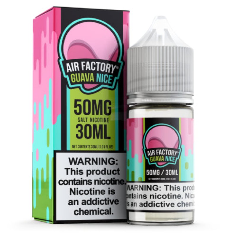 Air Factory Synthetic Salt Guava Nice delivers authentic tropical guava flavor which is an ideal flavor for a smooth and potent salt nic juice.