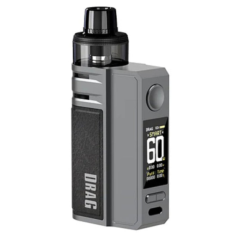 Powered by a built-in 2550mAh battery, the Drag E60 Pod Kit offers up to 60 watts of output power and supports both MTL and DTL vaping styles. Its refillable 4.5ml pod utilizes a bottom fill system for easy and mess-free refills, and comes with two PnP coils (0.2ohm and 0.3ohm) for customizable vaping experiences.